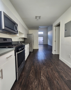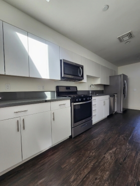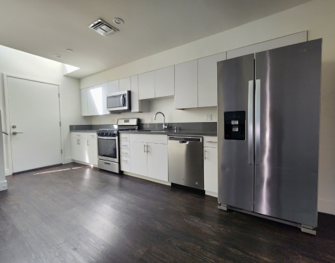 Spacious and bright, beautiful newer-built Townhouse. First level: Kitchen with quartz counters, stainless appliances, plenty of cabinets. Half bathroom with storage. Living and dining areas with high ceilings lead to private patio. Second level: Loft area, perfect for home office. Third/Fourth levels: 2 bedrooms, 2.5 bathrooms, full-size washer/dryer. Top level leads to rooftop deck with 180 degree views of the City. Wood laminate flooring throughout. Two car parking in secured garage. Please note: the unit is unfurnished