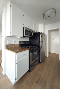 Gorgeous Spacious bright unit with laminate flooring throughout, balcony, lots of closet space, air conditioning in the living and bedrooms. Quartz counter tops, stainless steel appliances. Two story building. Community laundry room. Great location!