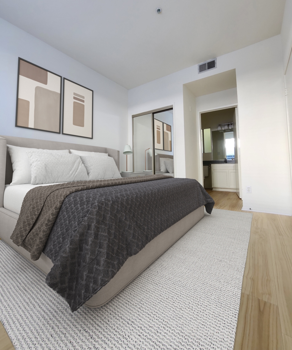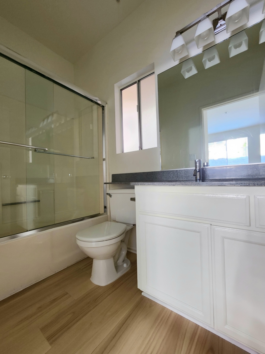 Upper unit with dual master suite floor plan, brand new laminate throughout, central air & heat, gas fireplace, balcony, quartz counter tops, stainless steel appliances. 4 story gated elevator building and parking in the heart of Brentwood. Please note the unit is unfurnished.