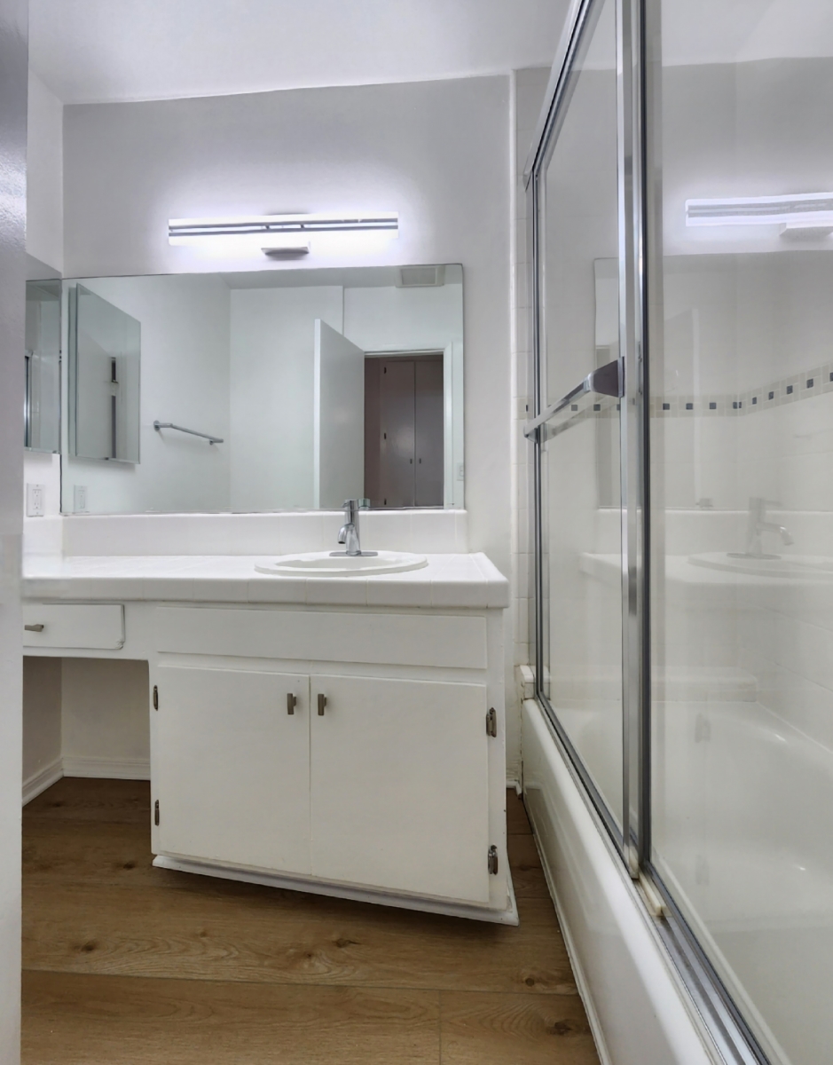 Gorgeous lower floor unit with lots of light and spacious. New laminate flooring, lots of closet space, 2 story contemporary style with a Zen courtyard conveniently close to Westwood and only minutes to UCLA. Building has community laundry room. One car parking space included. Great residential neighborhood near Westwood and only minutes to UCLA. Please note the unit is unfurnished.