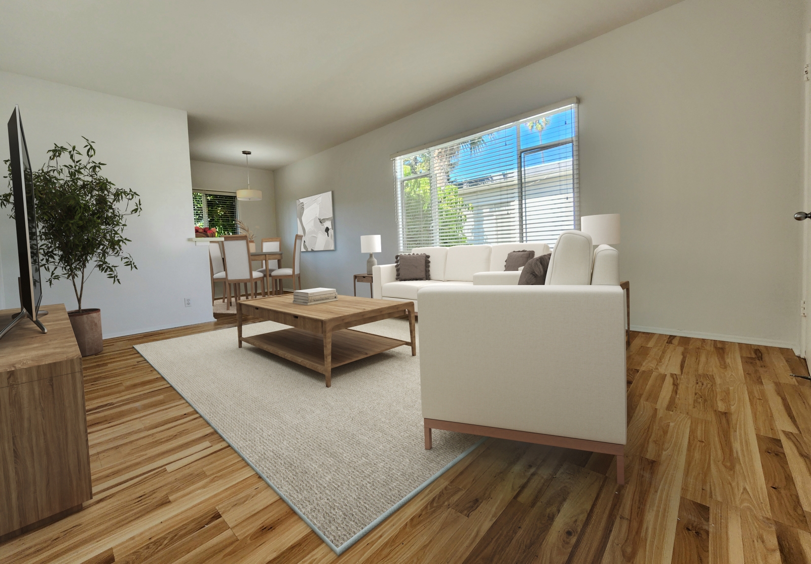 Upper front corner newly remodeled with wood floors, caesarstone counter tops in the kitchen & bathroom. Air conditioning unit. The gated building has a swimming pool and on site laundry room. Great Brentwood neighborhood north of Montana. Please note the unit is unfurnished.