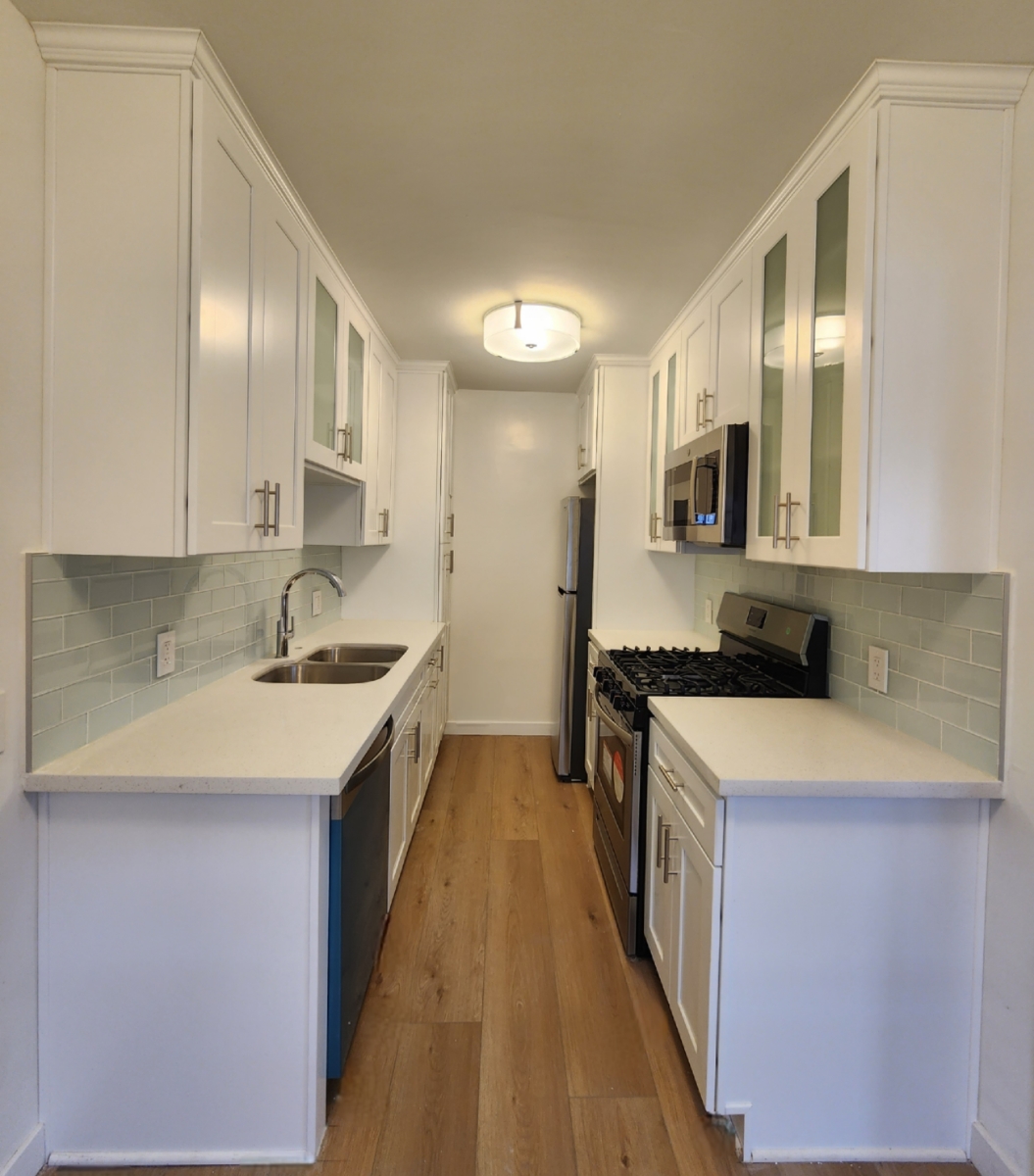 Gorgeous brand new remodel! Spacious bright unit with laminate floors throughout, air conditioning in the living and bedroom. New kitchen cabinets, quartz counter tops, glass back splash, new stainless steel appliances. Two story building. Community laundry room. . Great location near Westfield Century City, Santa Monica and Brentwood.