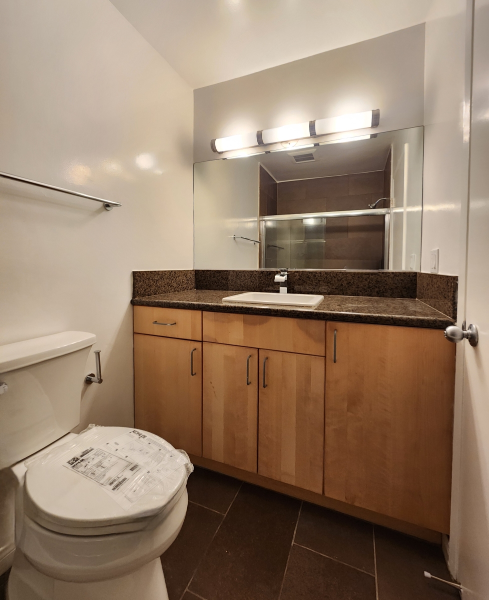Bright, updated unit features new in-unit laundry, beautiful wide plank flooring, window treatments. Roomy floorplan features 3 bedrooms with large closets. Two bedrooms have attached bathrooms. Kitchen has granite counters, wood cabinets and stainless steel appliances. 1 car parking included, no permit needed on street. Great residential location near Westwood and Century City. Pets okay with pet fee.