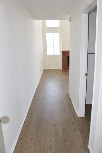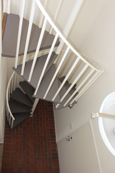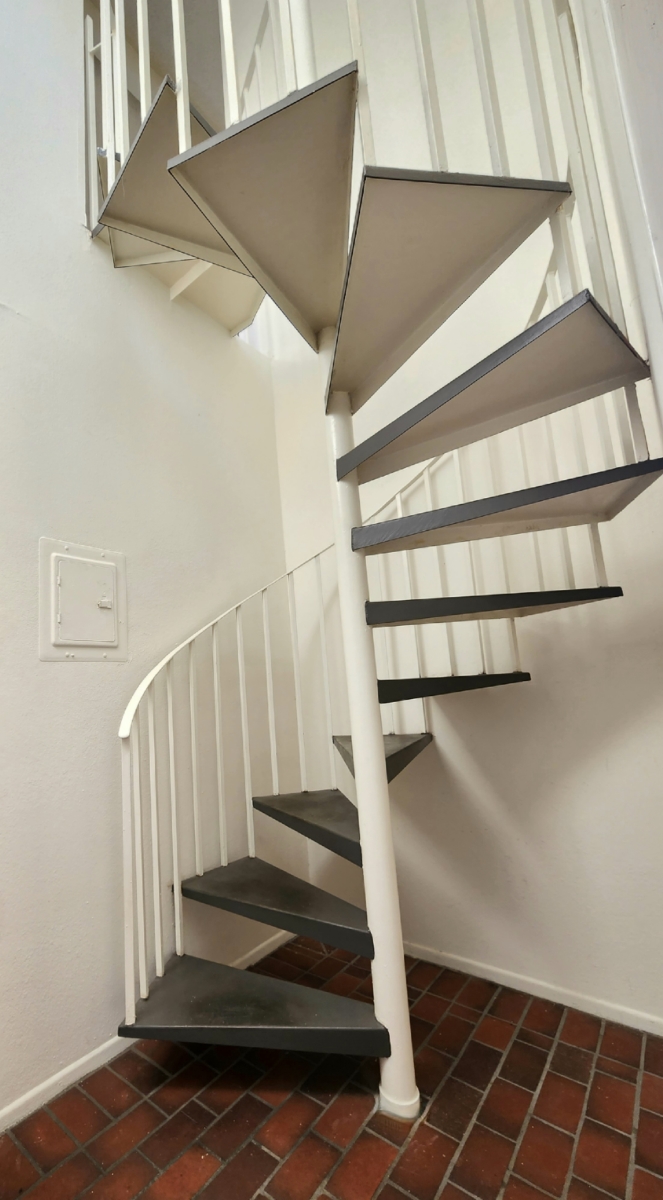 The foyer has a spiral staircase leading to the loft adds drama to the foyer and features a powder room.