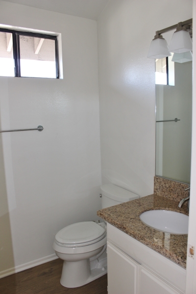 The kitchen has granite counter tops , undermount stainless sink and stainless steel appliances