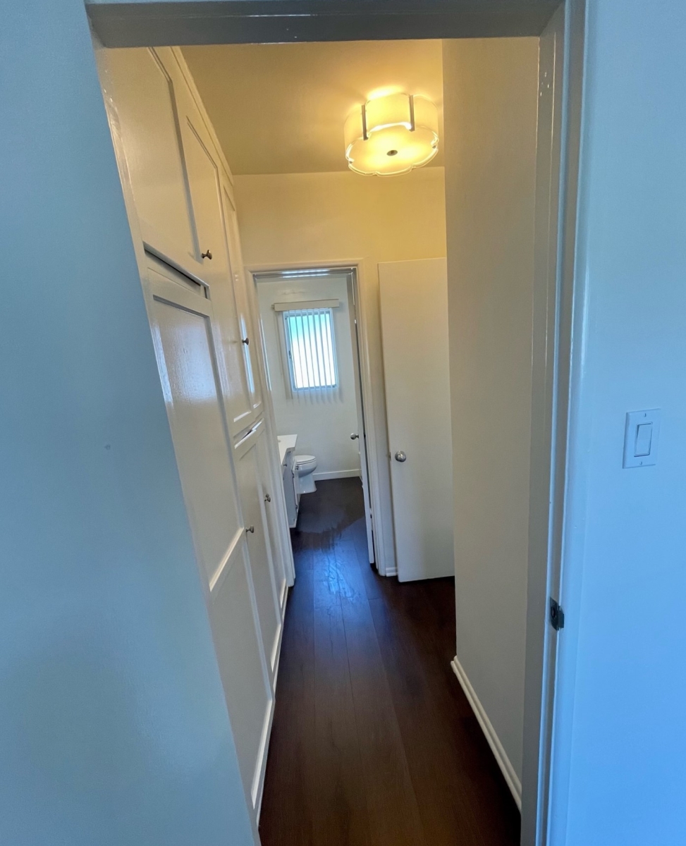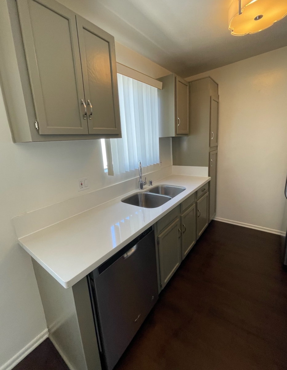 Top floor unit with laminate floors throughout, quartz counter tops in the kitchen, stainless steel appliances, air conditioning unit. The gated building has a swimming pool and on site laundry room. Great Brentwood neighborhood north of Montana. Please note the unit is unfurnished.