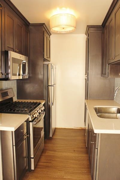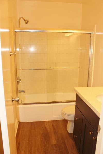Brand new kitchen with custom cabinets, quartz counter tops, glass back splash & new kitchen appliances (dishwasher, microwave, stove & refrigerator)