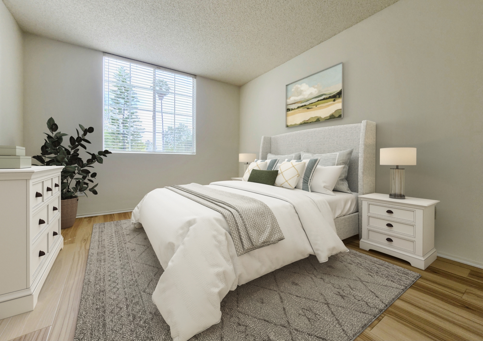 Lovely front corner unit dual master suites floor plan, french doors opening to the balcony, wood floors throughout, and stainless steel appliances. Please note the unit is unfurnished.