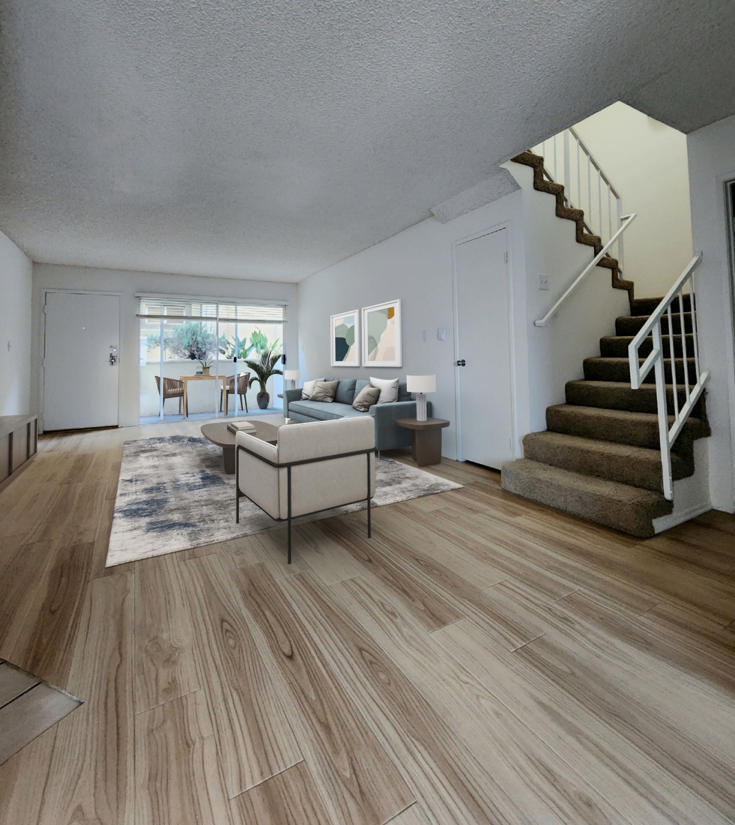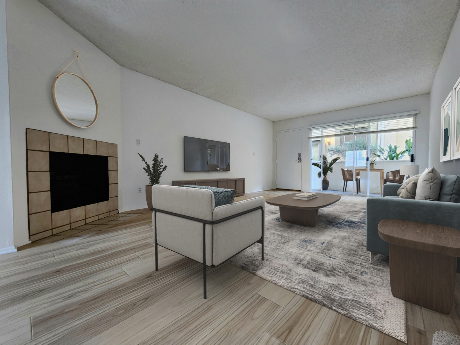 Spacious 2 story 2b+2.5 b townhouse with laminates and new carpet , 1/2 bath on the lower level and both bedrooms on the upper level have a full bath, gas fireplace, patio of the living room, wall unit A/c, eat-in kitchen with stainless steel appliances. Gated building & parking. Please note the unit is unfurnished.