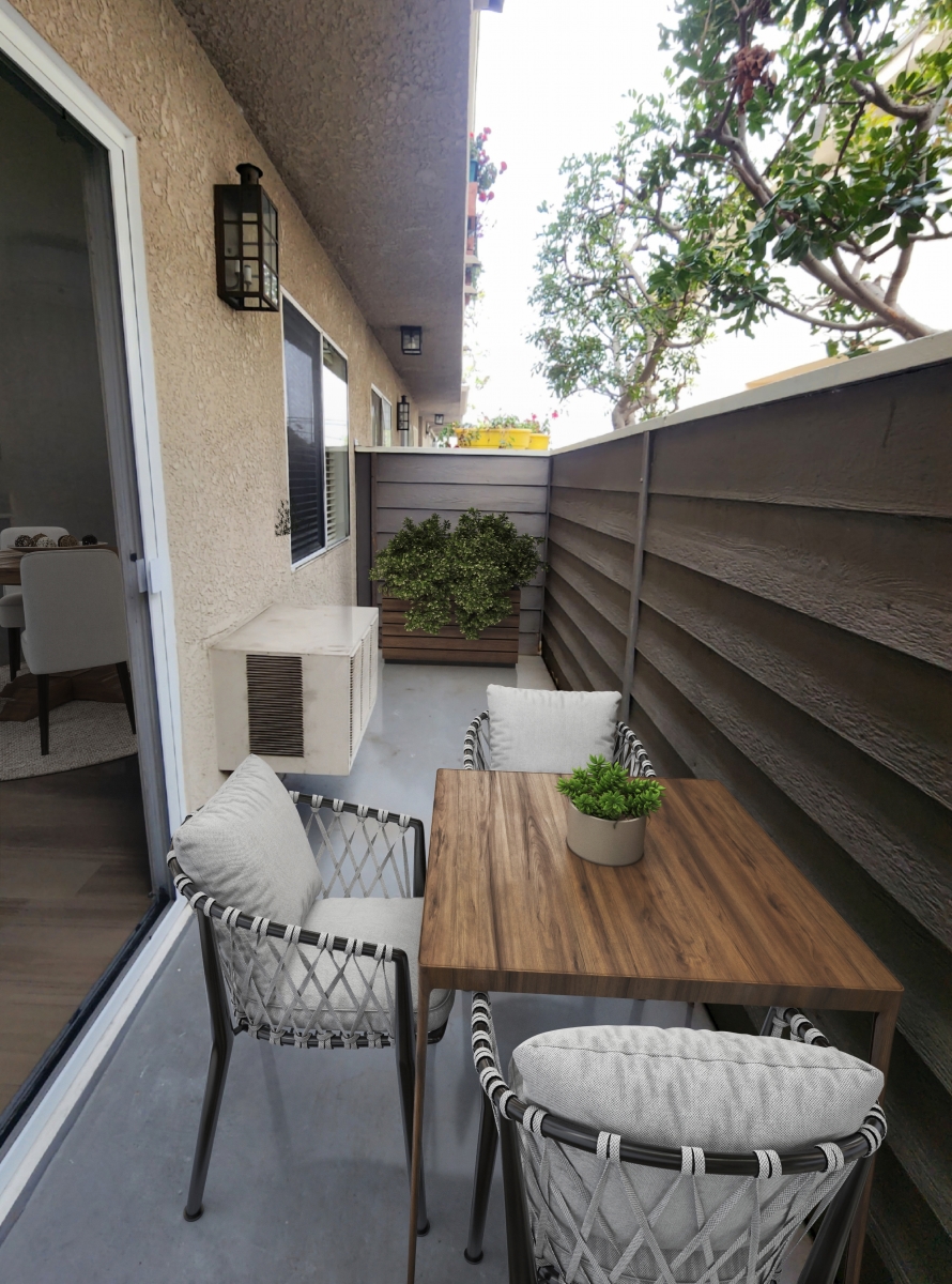 Large unit with large patio, laminates throughout, air conditioning. 2 Story Cape Cod style building in Mar Vista. Please note the unit is unfurnished.