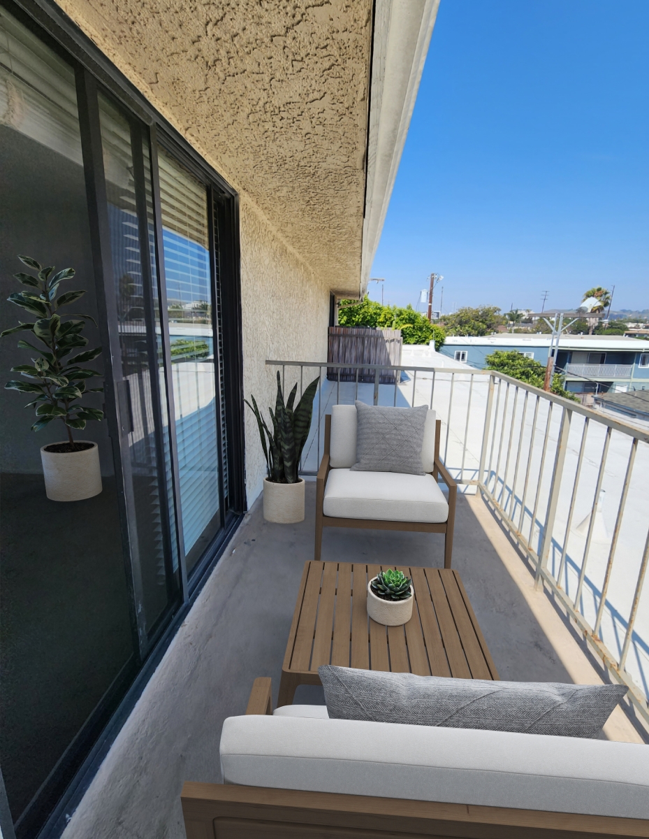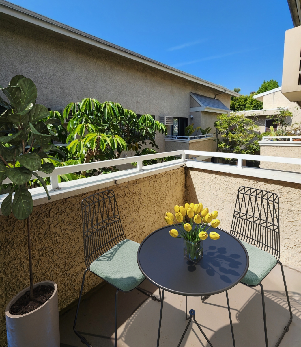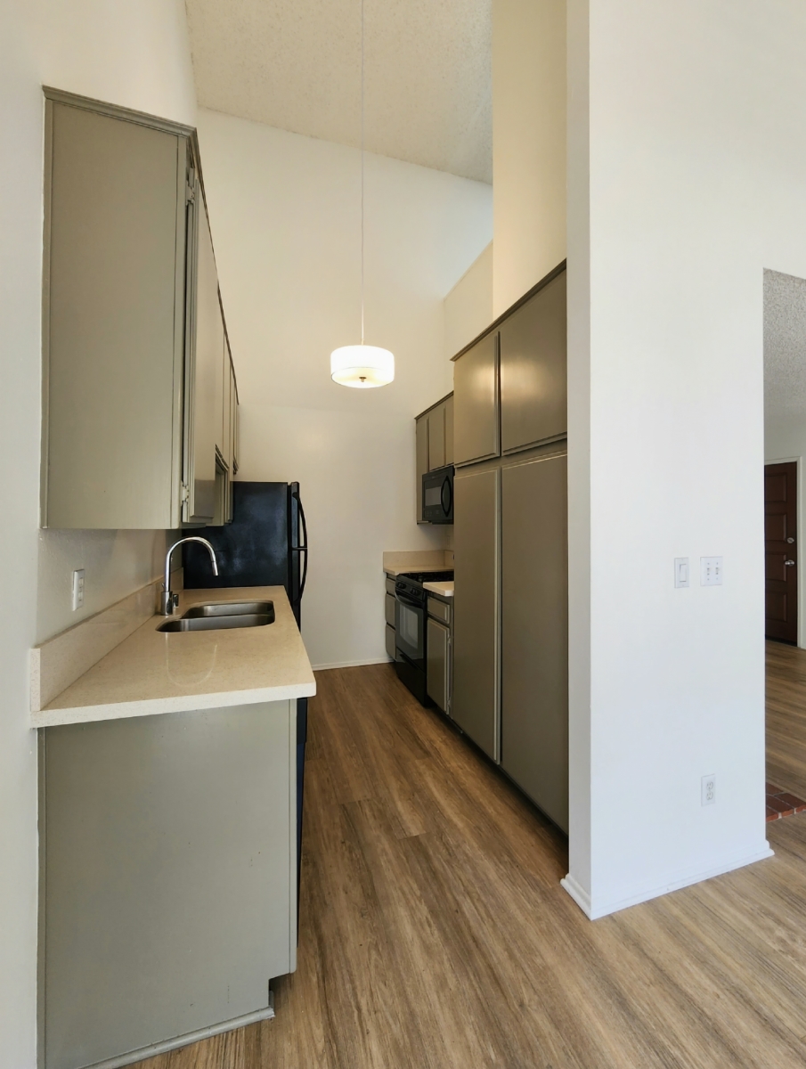 Top floor 1b+loft, dramatic soaring ceilings, private sundeck from the loft with city views in a lovely 2 story gated courtyard building. .