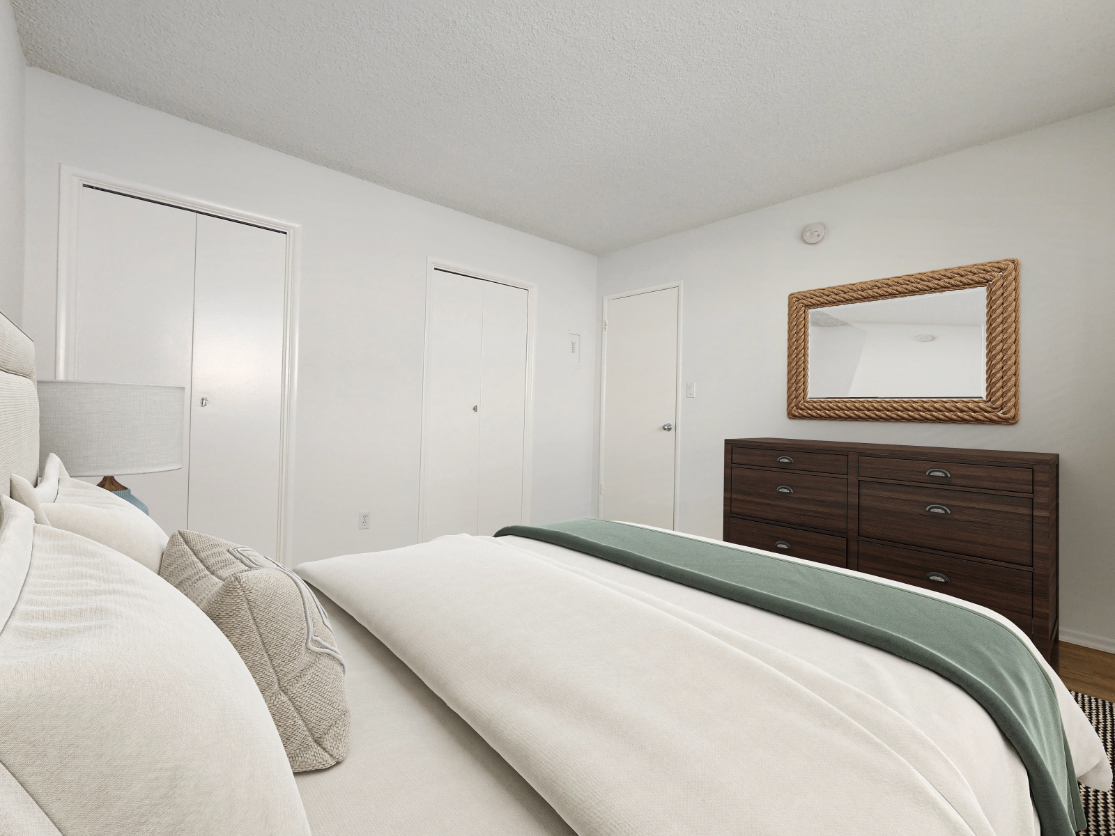Please note the unit is unfurnished. Spacious top floor unit wood laminates throughout, balcony .