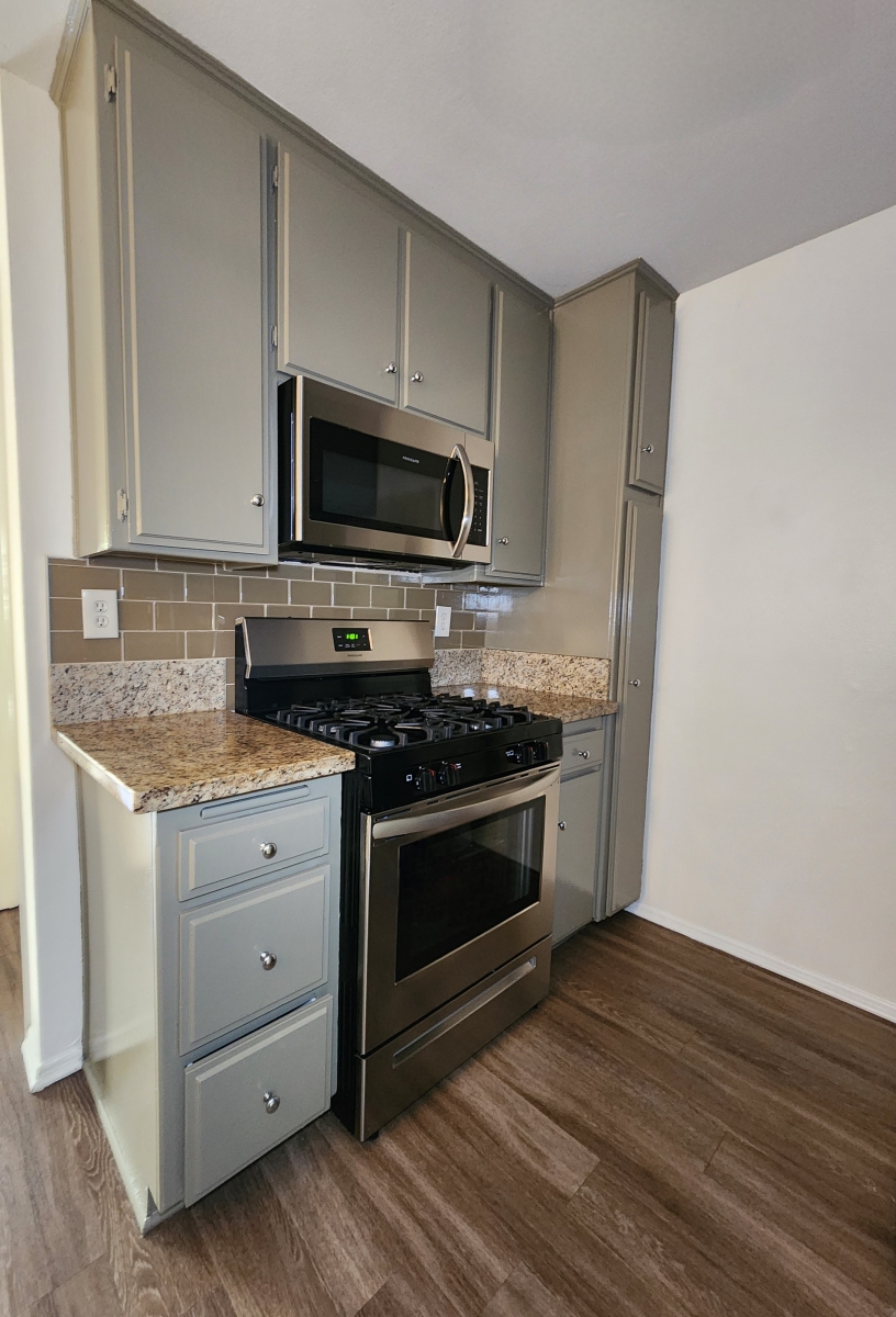 Dual Master suites, laminates flooring throughout, granite counter tops, glass backsplash. Stainless steel appliances. Air conditioning in living room and both bedrooms. The building is located just south of Brentwood and A couples blocks east of Santa Monica. . Gated building & parking ( 2 spaces )