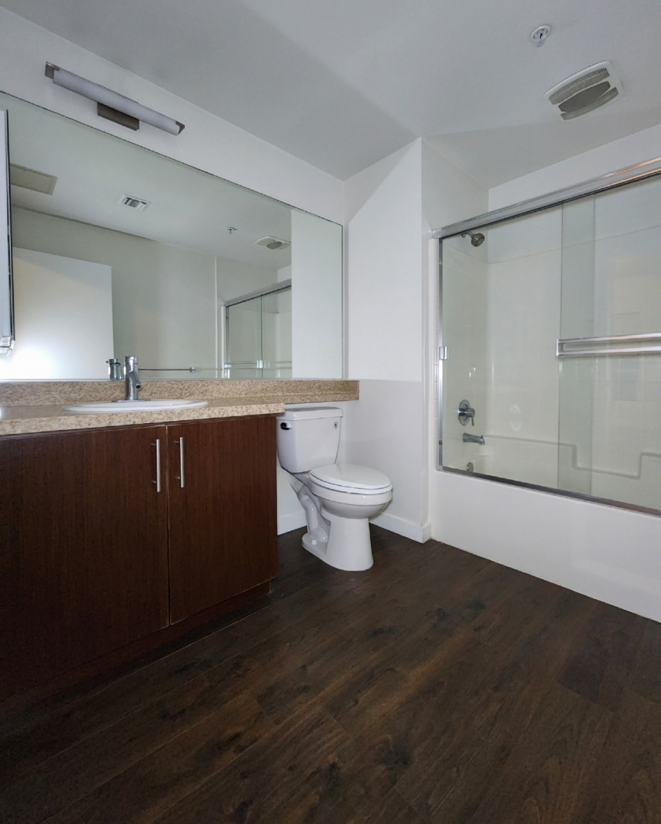 Spacious 2B+2B with laminates throughout, central air & heat, balcony, washer & dryer, quartz counter tops in kitchen & bathroom, stainless steel appliances.