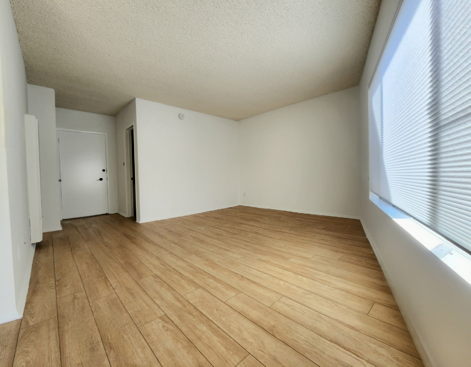 Spacious studio apartment with balcony and a walk-in closet in a gated building with WOOD floors throughout. Please note the unit is unfurnished.