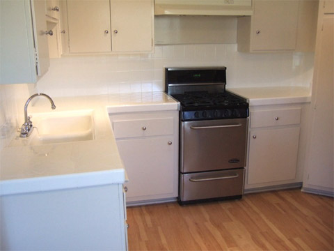 Top Floor single ( 3 rooms) full kitchen, living room and bathroom with Skylight. Good storage . Gated building with pool.