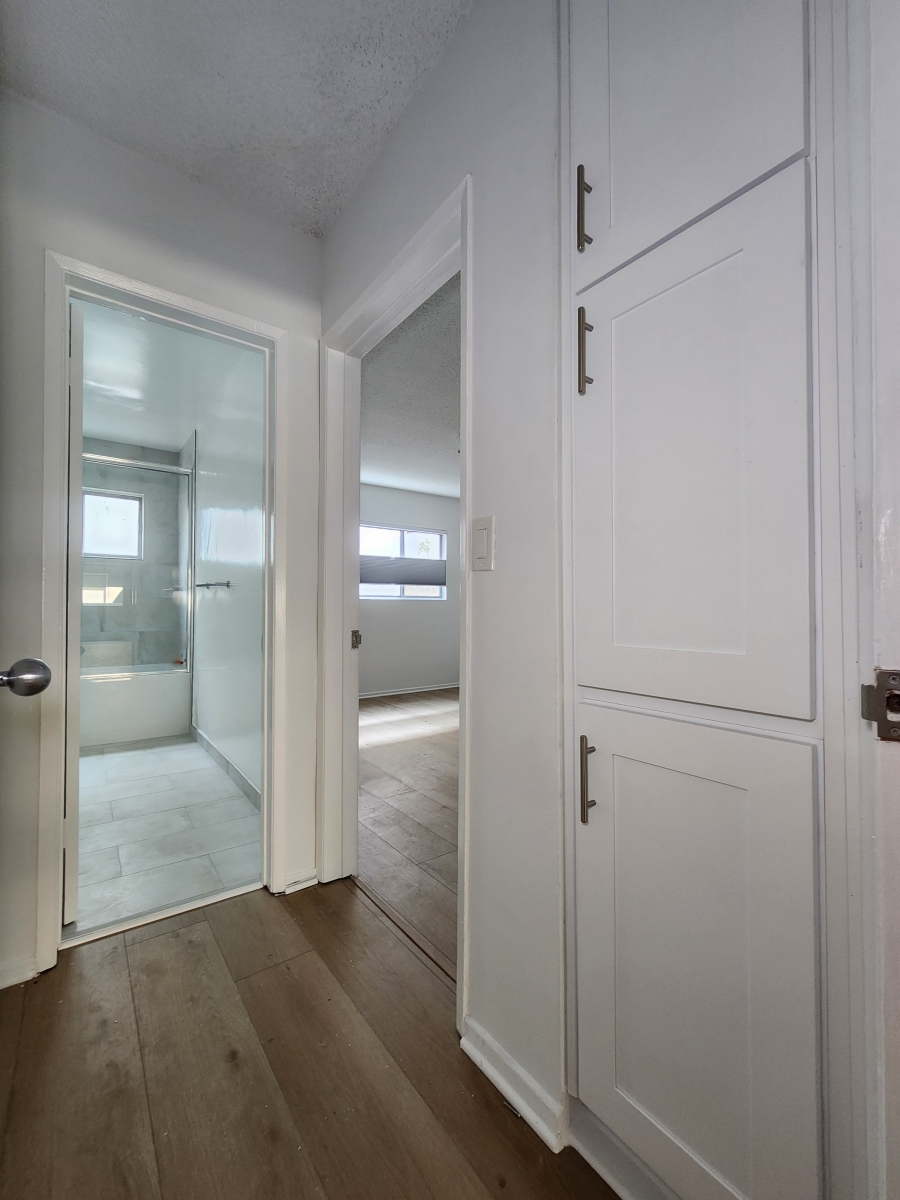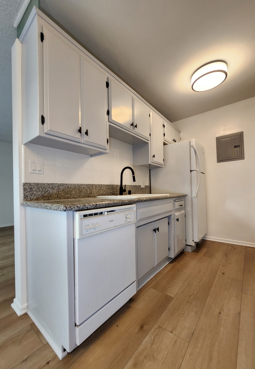 Lower spacious unit with new laminate flooring throughout. Lots of closet space, renovated bathroom, dishwasher, stove top, wall oven, refrigerator and washer and dryer. Two story contemporary style with a Zen courtyard. Great Westwood location and only minutes to UCLA. Please note the unit is unfurnished.