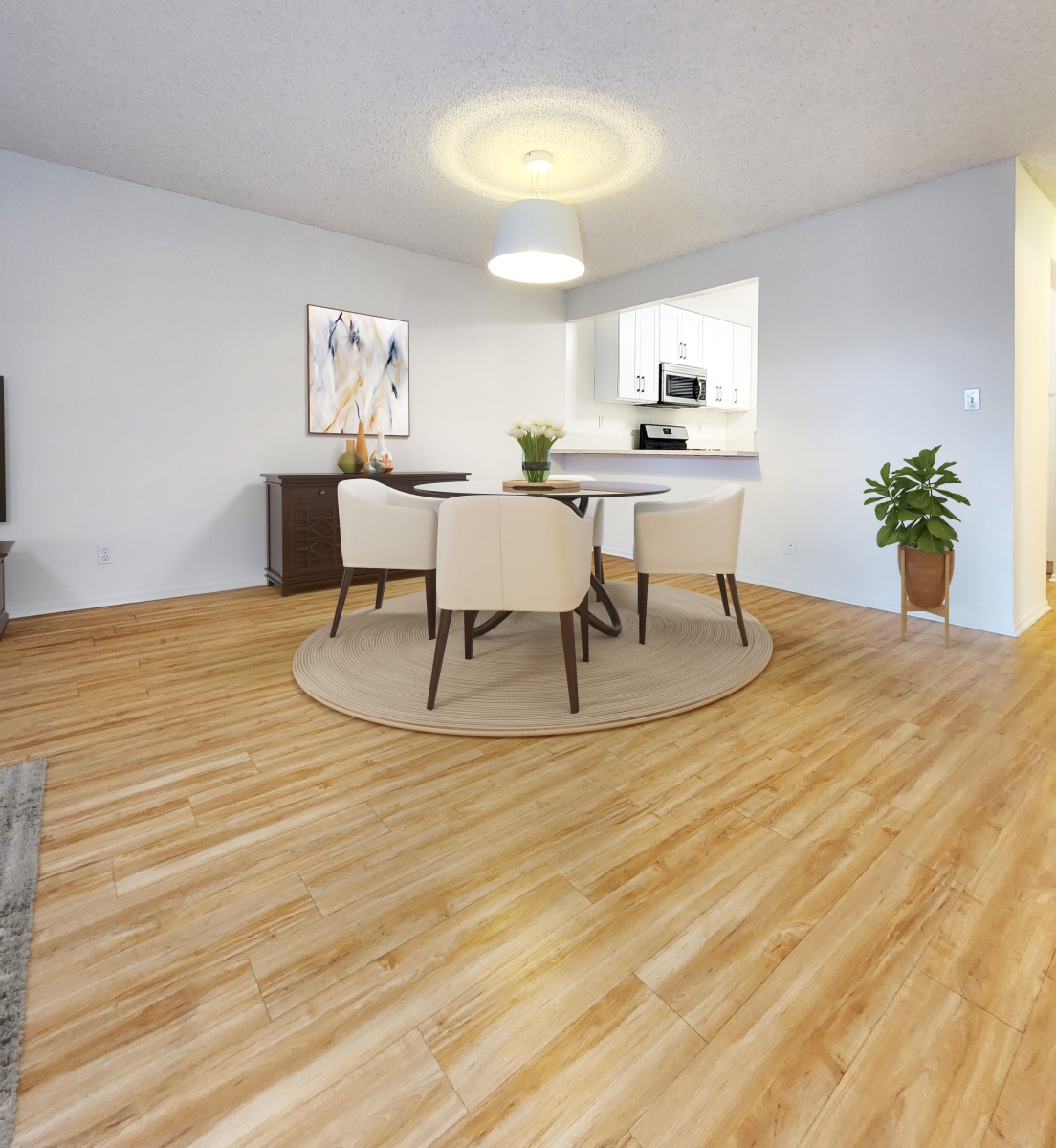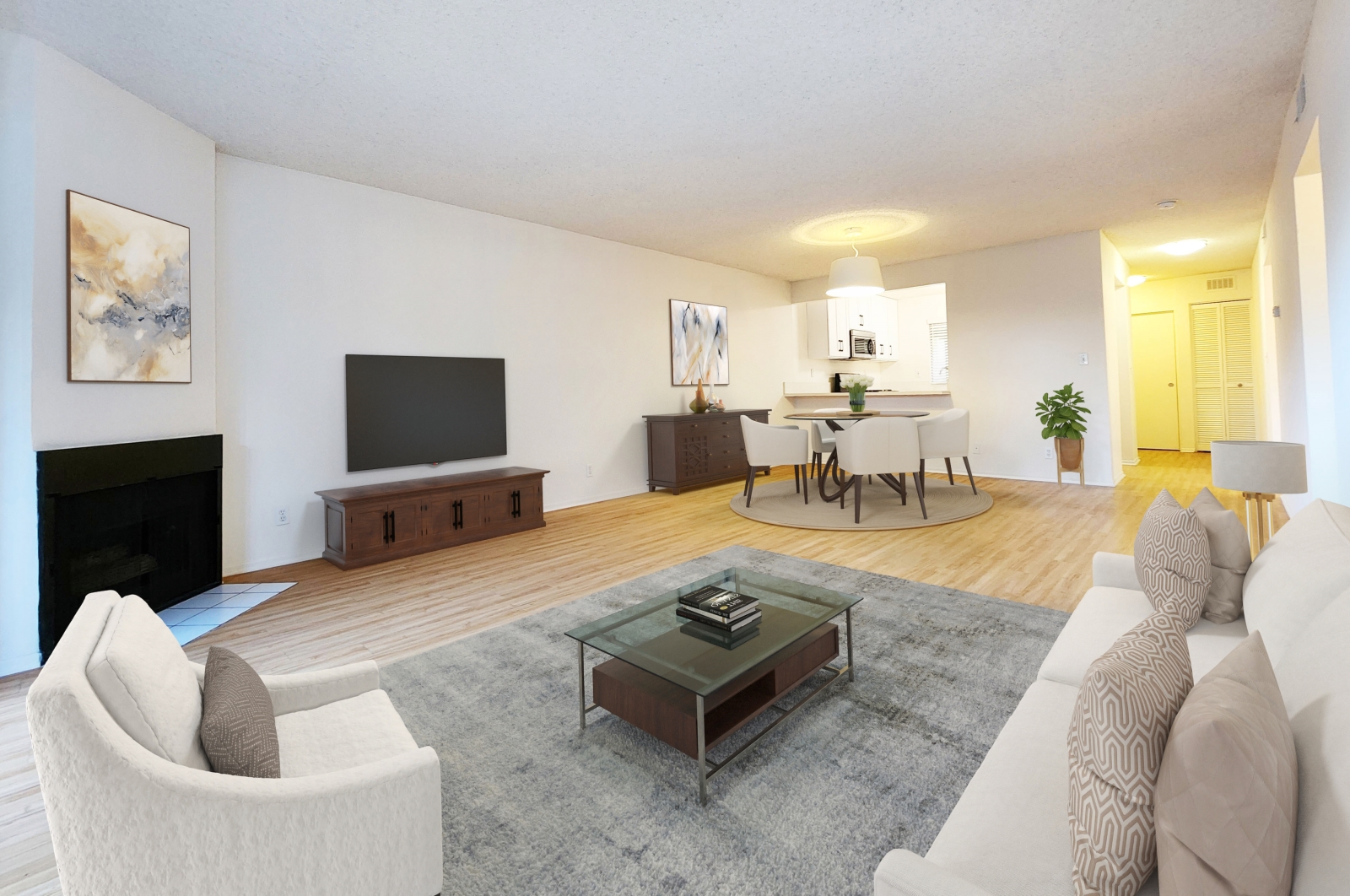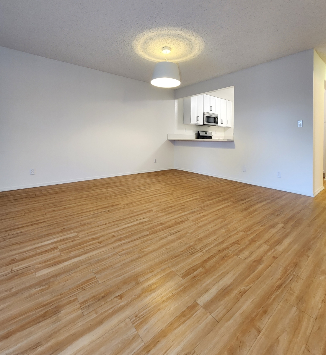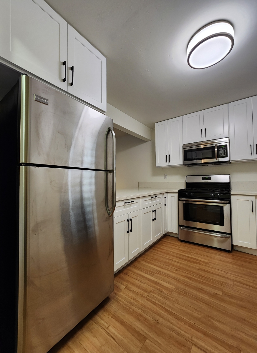 Spacious unit with large balcony with tree top views /wood laminate floors and new carpet, stainless steel appliances. Gated elevator building & parking.