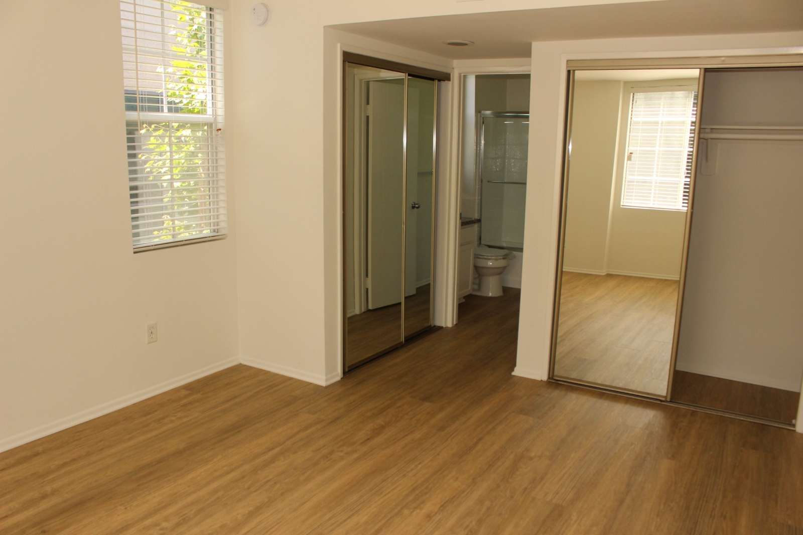 Spacious front corner unit with dual master suites floorplan, french doors opening to a lovely balcony, laminates throughout, gas fireplace, central air & heat, granite counter tops, stainless steel appliances in 3 story elevator building in great residential neighborhood.