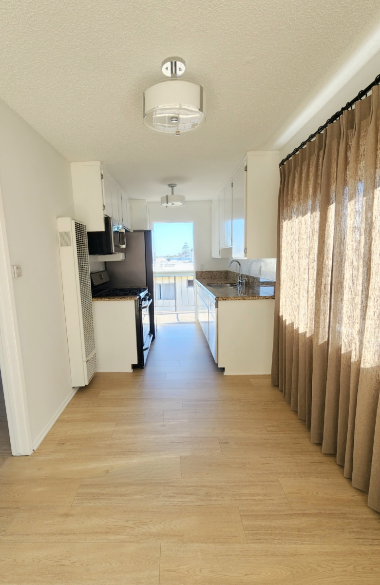 Top floor spacious corner unit, plenty of light, small private balcony off the kitchen. Stainless steel appliances. Very quiet building, short distance to fine restaurants. I parking space in carport. Laundry on site. Please note the unit is unfurnished.
