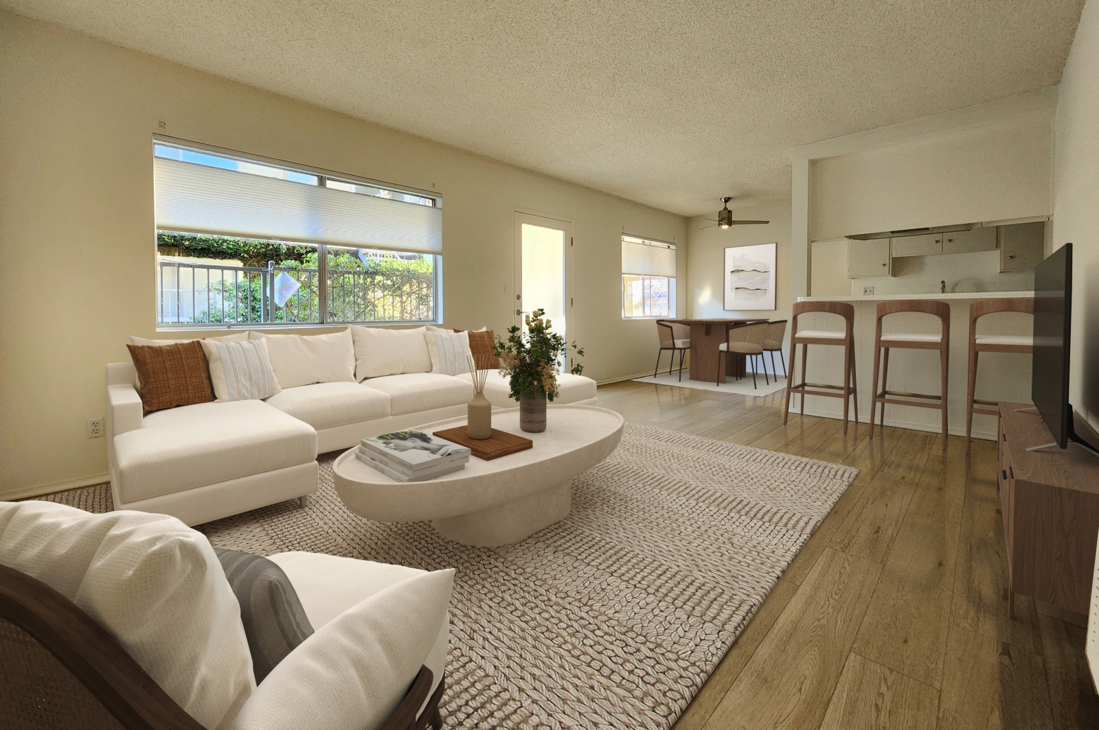 Sunny 1 bedroom with new carpet. Bedroom has walk-in closet. Beautiful newly renovated 2-story building with sparkling swimming pool. Great West LA location, close to Yahoo center, MTV, Water Gardens, Santa Monica and Brentwood. Sorry no pets.