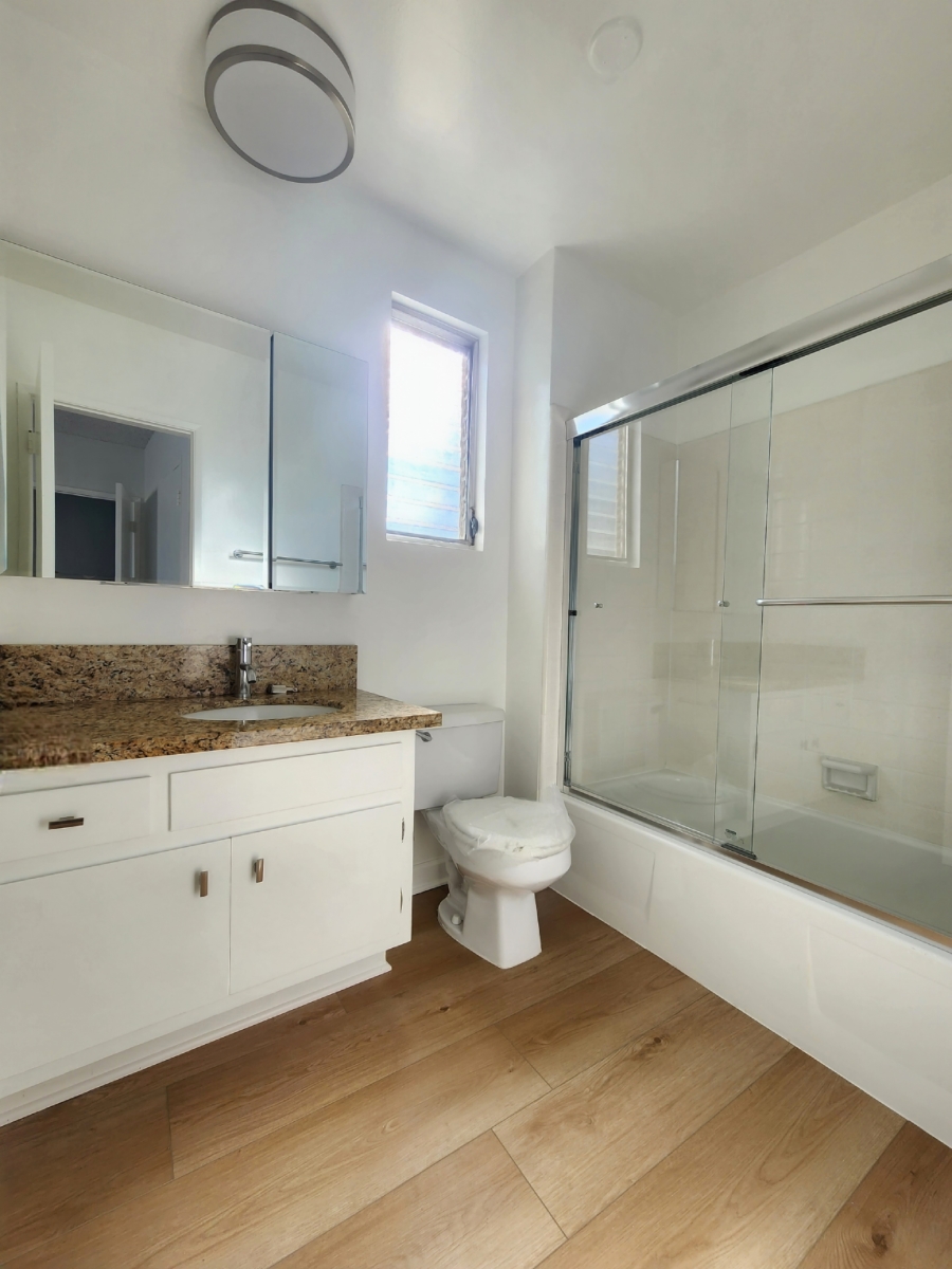 Top floor spacious unit with large balcony, laminates flooring, gas fireplace, air conditioning, granite counter tops, stainless steel appliances. Quiet 2 story Mid Century style building just south of Brentwood. Please note the unit is unfurnished.