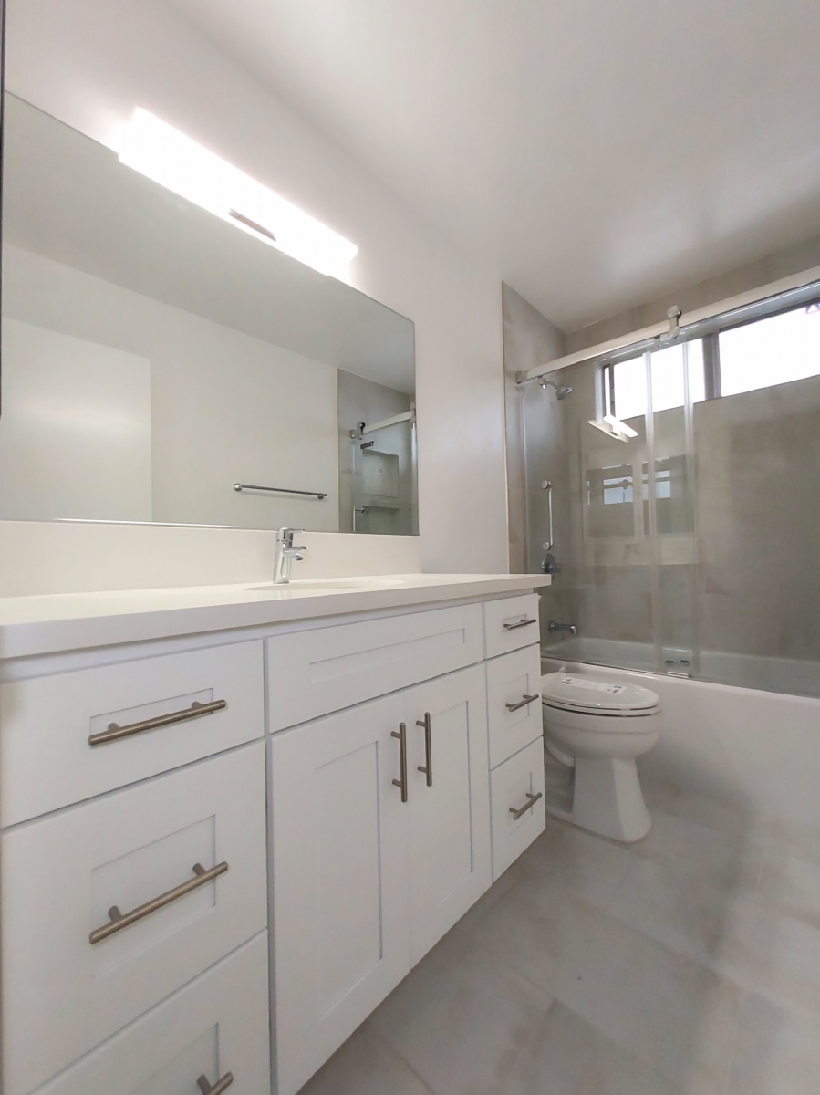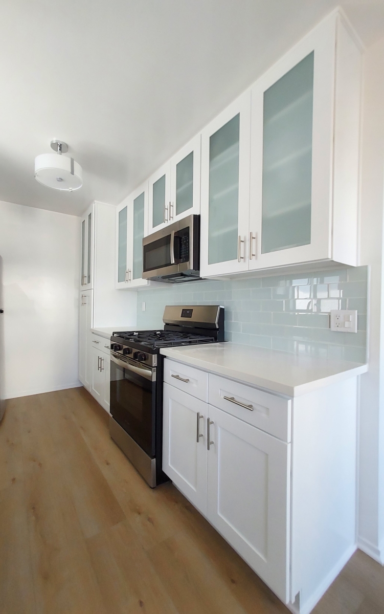 Gorgeous brand new remodel! Spacious front upper unit with laminate floors throughout, air conditioning in the living and bedroom. New kitchen cabinets, quartz counter tops, glass back splash, new stainless steel appliances. 2 story building. Community laundry room. Great West LA location near 405 Fwy, I-10, UCLA, Santa Monica and Brentwood. Please note the unit is unfurnished.